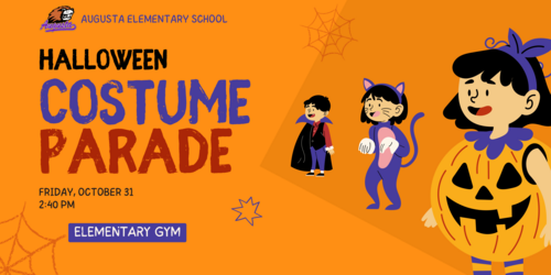 The Elementary School costume parade will be on Friday, October 31, at 2:40 PM in the Elementary gym!